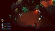 Bushtroo chatters its teeth and causes stalactites made of teal amber to drop on each party member.