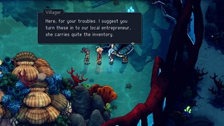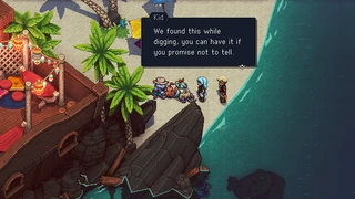 30 | Mooncradle | Coral Hammer received | In the lower-right section of Mooncradle, use the Mistral Bracelet to push the leaves into a pile in order to automatically receive the Rainbow Conch from the nearby villager. |