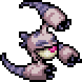 Strife Minion has a single eye with a pale yellow sclera and pink iris, which comprises most of its body. Around it is a pale red skin that resembles an eyelid, which has three purple markings on the top lid that open into additional eyes with black sclera and pink irises when it attacks. It has three clawed appendages connected to its eyelid by thin limbs, one positioned directly on top, the other two on either side near where the top and bottom lids meet. A curved purple striped spike protrudes from the back of each appendage. It has two stumpy purple tails on its backside where the optic nerve of an eye would be.